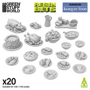 Setet är 3D-printat i högkvalitativt resin och fångar noggrant formen och texturen på olika rätter, vilket ger dina projekt en extra nivå av inlevelse. Varje detalj är designad för att återspegla en autentisk känsla av medeltida, fantasy- eller realistiska måltider.